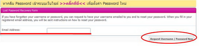 - คลิ๊กที่ลิงค์ ใน Email เพื่อขอรับ User หรือ Password ดังรูป