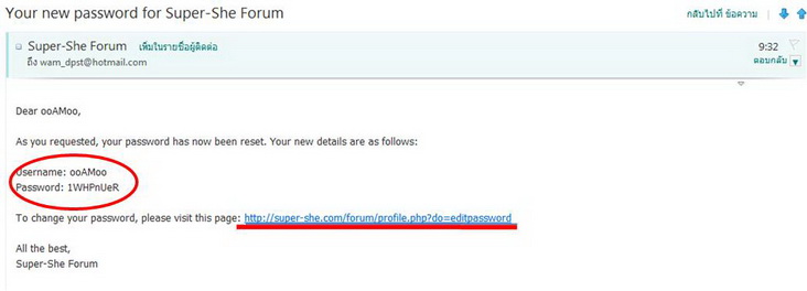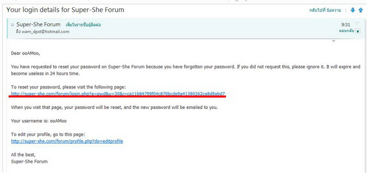 - ระบบ Super-She Forum จะส่ง Email มายัง Email ที่เรากรอกข้างต้น
